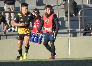 それでもリーグ戦2位のサントリーは食らいつく。「30点離されても自分たちは点を取れるチーム」と田村。途中出場のWTB尾﨑晟也が左サイドを切り裂き、2トライを挙げる。いずれも田村がコンバージョンキックを成功。27-38と詰め寄る。
