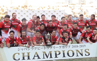 19日、ジャパンラグビートップリーグカップ2018-19総合順位決定トーナメント最終日が各地で行われた。東京・秩父宮ラグビー場での決勝はトヨタ自動車ヴェルブリッツがサントリーサンゴリアスを43-34で下した。今季より新設されたカップ戦で、トヨタ自動車が初代王者に輝いた。