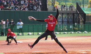 トヨタ自動車の先発マウンドにはモニカ・アボットが上がる。 昨季は12勝無敗、防御率0. 24と圧倒的な成績を残してMVPを獲得した。 アメリカ代表のエースは初回1死満塁のピンチを迎えるが、 5番の内藤実穂、 6番の大工谷真波を抑えて初回をゼロでスタートしてみせた。