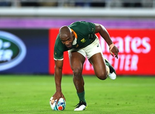 (写真:南アフリカがW杯決勝でトライを挙げたのはマピンピが初。テストマッチを含め日本で9トライも稼いだ Photo by Francois Nel-World Rugby via Getty Images)