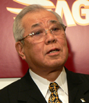 (写真:大場の当たりクジをひき、笑顔のソフトバンク・王監督)