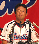 (写真:「兼任監督はできないよ、というつもりはない」。最後は明るく語った古田監督)