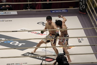 すると試合が動いた。「自分は左ローから入ることが多い」と語っていた朝倉だが、インローを襲ったキックが斎藤の急所を直撃するアクシデント。斎藤の回復を待つため、一旦インターバルが与えられた。このラウンドは共に決定打が出ないまま終了した。