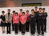 (写真:「世界卓球2008」会見に出席した代表選手ほか)