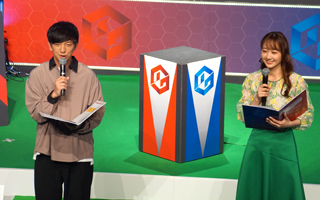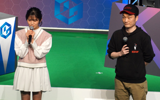 (写真:パワプロの解説はプロプレイヤーの吉田<右>が務めた)