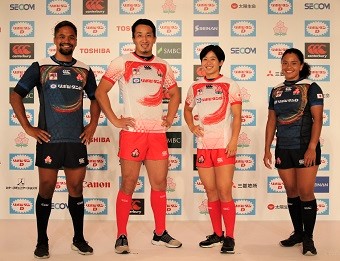 (写真:メンバーと共に大会用の新ジャージーも発表された ©JRFU)