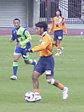 後半34分、MF宮原裕司選手の右サイドからのアーリークロスを、ペナルティエリアに陣取るFW田中俊也選手が受け取り、DFをかわしつつ、シュートを放つ。GKにクリアされるが、これによりコーナーキックのチャンスを得た。