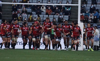 23分には途中出場のWTBテビタ・リーが自陣からビッグゲイン。インゴール目前まで迫り、最後は同じく途中出場のSH齋藤直人がトライを挙げた。27分には中村のキックパスを大外で受けたリーがインゴール左隅にトライ。マッケンジーのコンバージョンが決まり、53-34と20点近いリードを広げた。