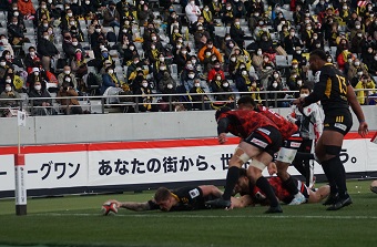 4分、9分とNo.8ショーン・マクマーンのトライで逆転し、36-27とリードを奪う。マクマーンは前半27分のトライと合わせ、ハットトリックを達成した。BL東京に1トライ1ゴールを返され、2点差まで迫られたが、マッケンジーのPGで39対34と突き放した。
